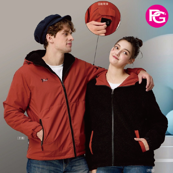 HJ-1036 可拆帽透濕透氣單面穿保暖毛裡外套