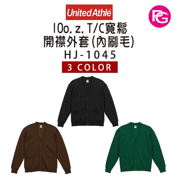 品名: HJ-1045 United Athle-10o.z.T/C寬鬆開襟外套(內刷毛) 編號: HJ-1045 顏色: 黑/深咖啡/長春藤綠 布色:3色 材質: 52% 棉,48% 聚酯纖維,內刷毛 表紗:100% 棉 特點: 1.羅紋束手、羅紋下襬 2.帶有90年代復古氣息的休閒輕便外套 尺寸: M~XL 適合:團體服/制服外套/活動外套/工作外套/團體外套/休閒外套