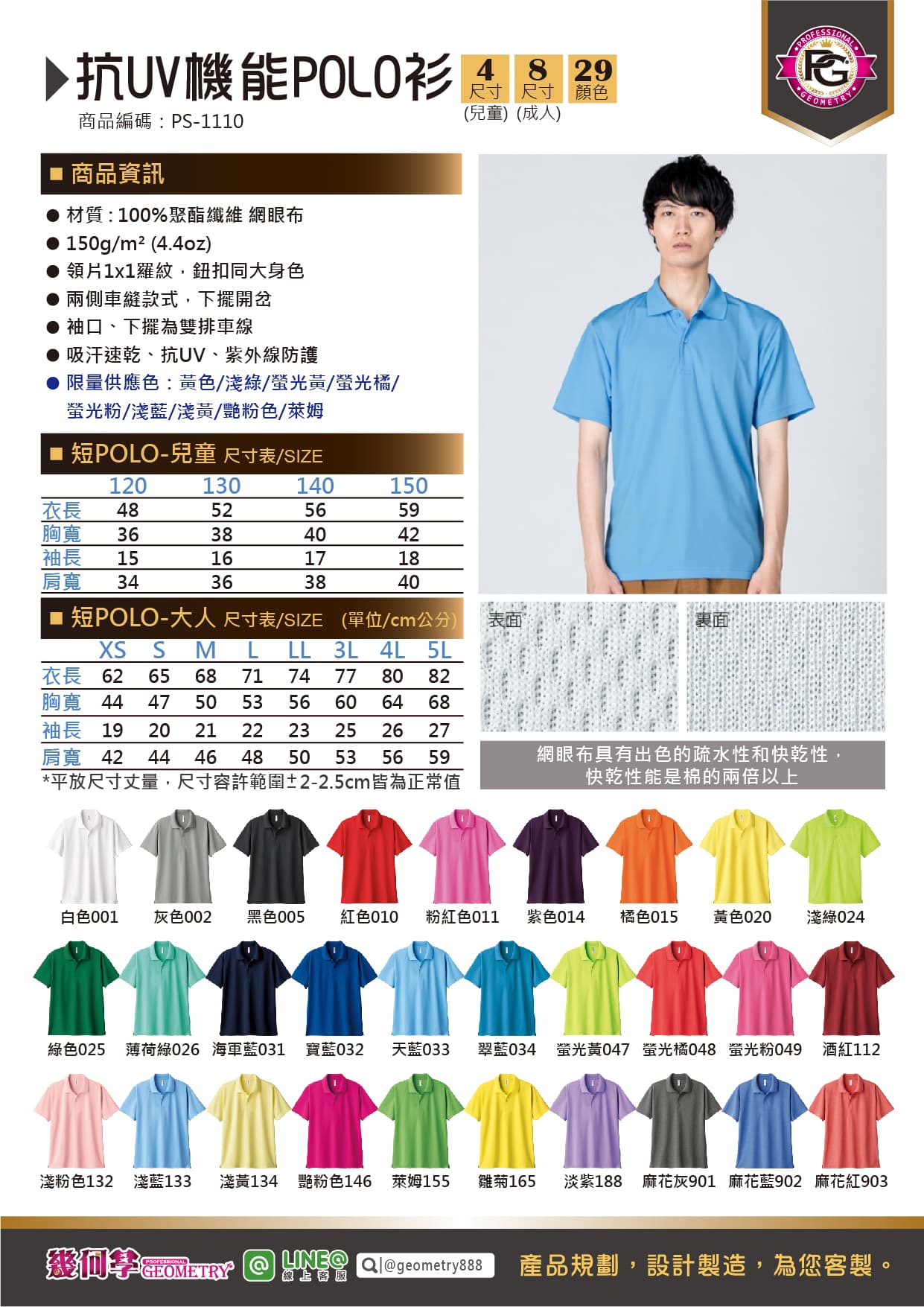 PS-1105 超細吸濕排汗抗UV男女款短POLO衫 -