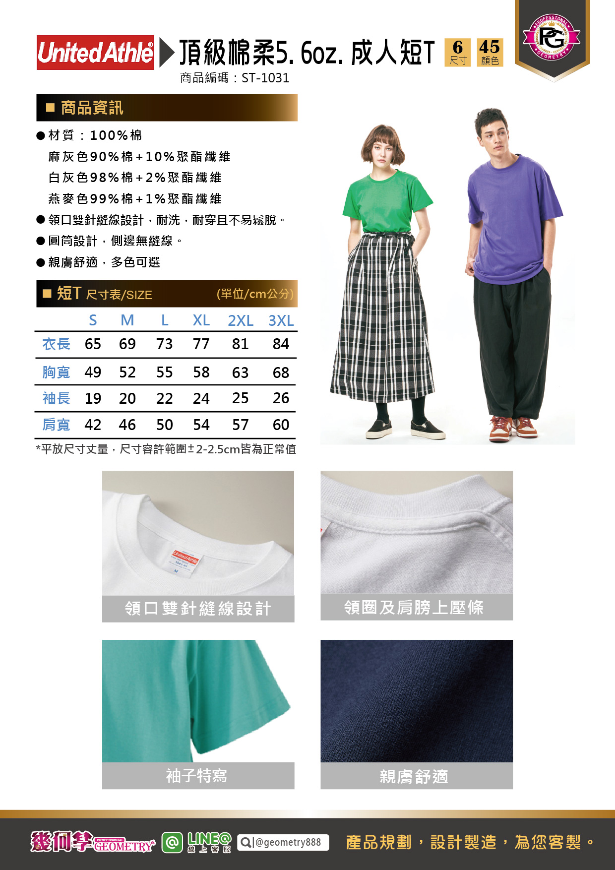 1.領口雙針縫線設計,耐洗,耐穿且不易鬆脫。