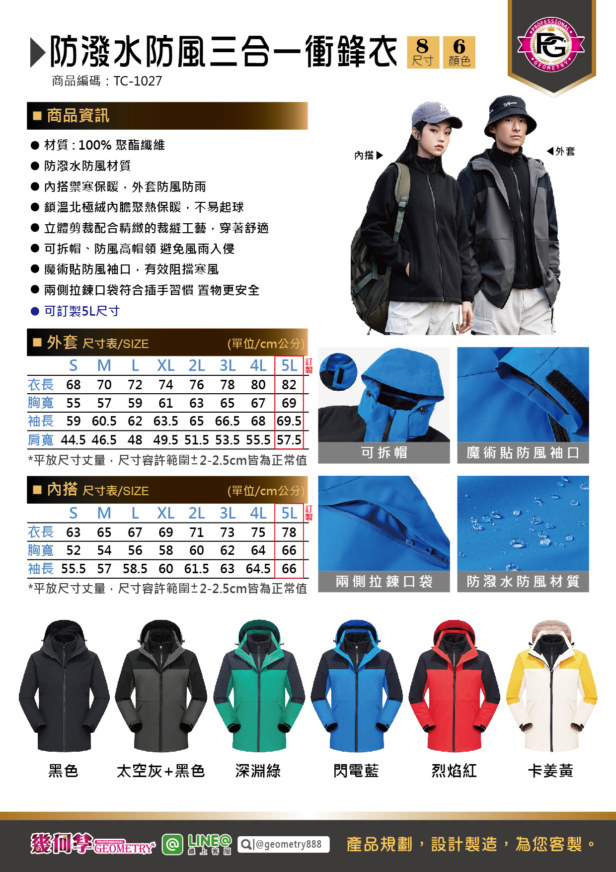 適合:工作服/制服/活動服/客製團體外套/兩件式外套