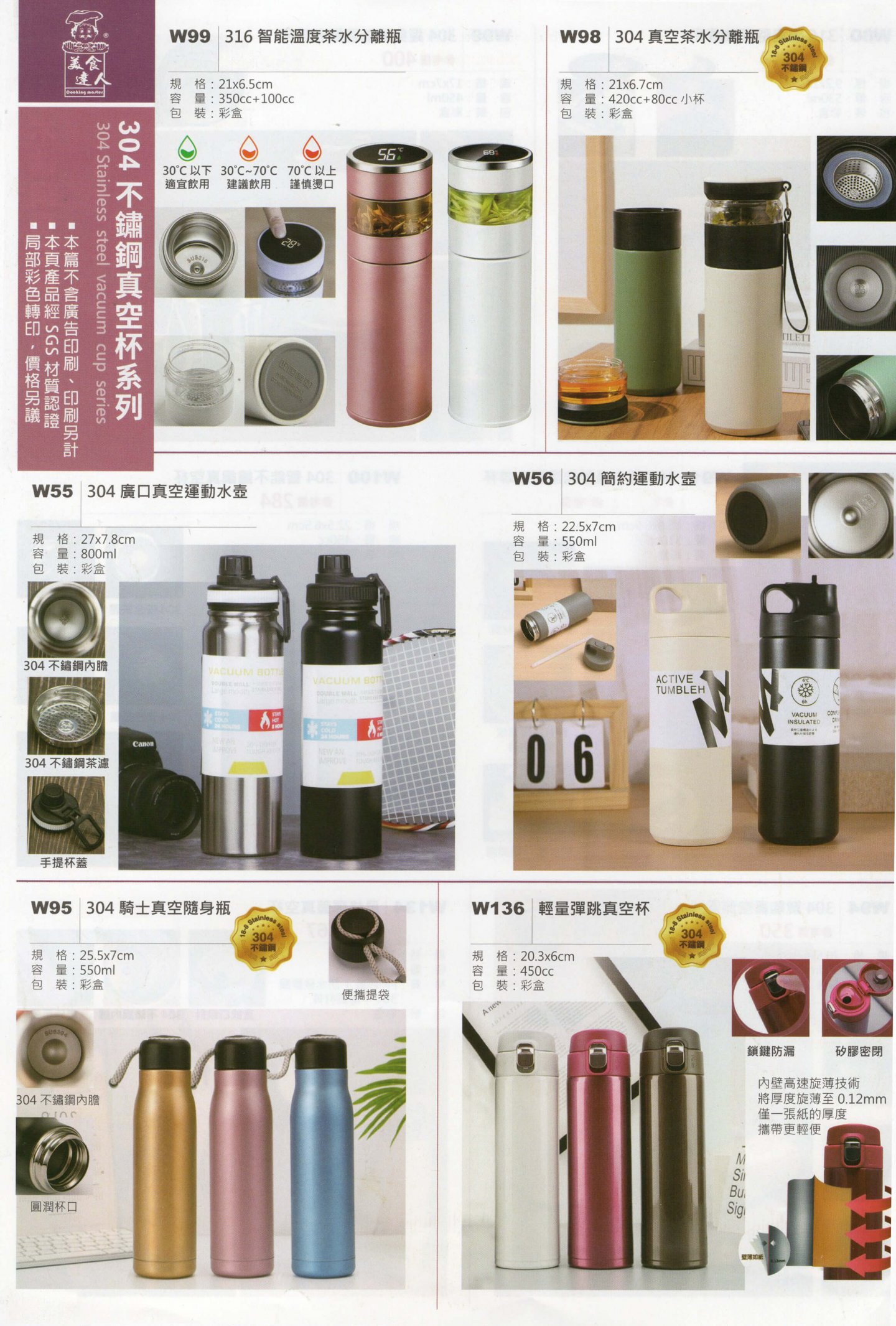 W98 304 真空茶水分離杯W55 304 廣口真空運動水壺W56 304 簡約運動水壺