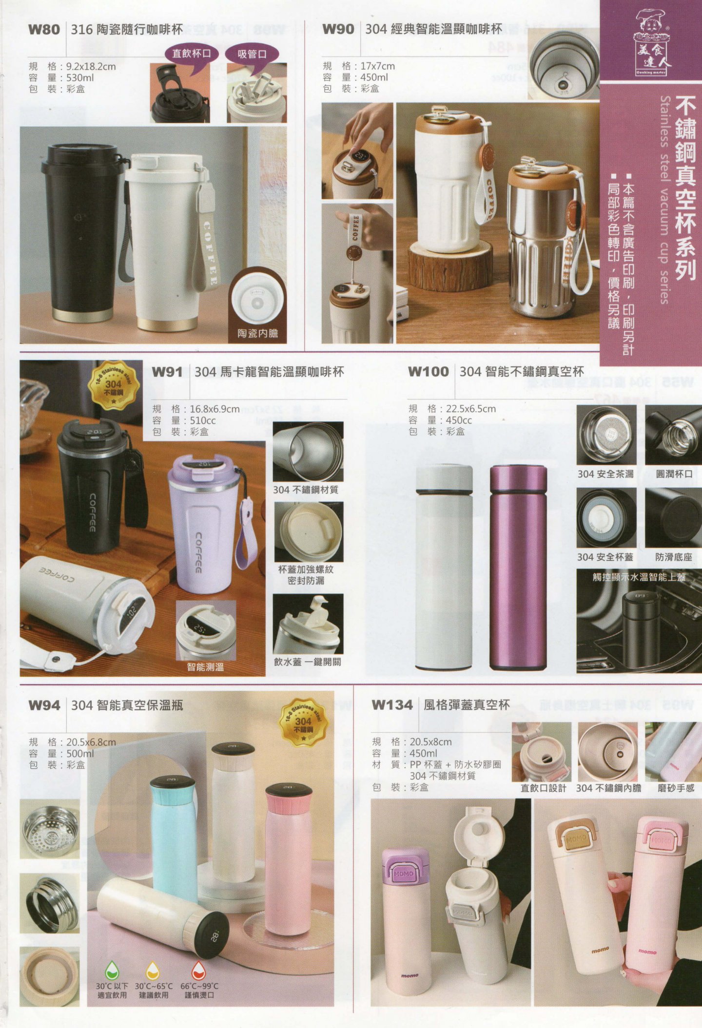 W94 304 智能真空保溫杯W134 風格彈蓋真空杯W99 316 智能溫度茶水分離瓶
