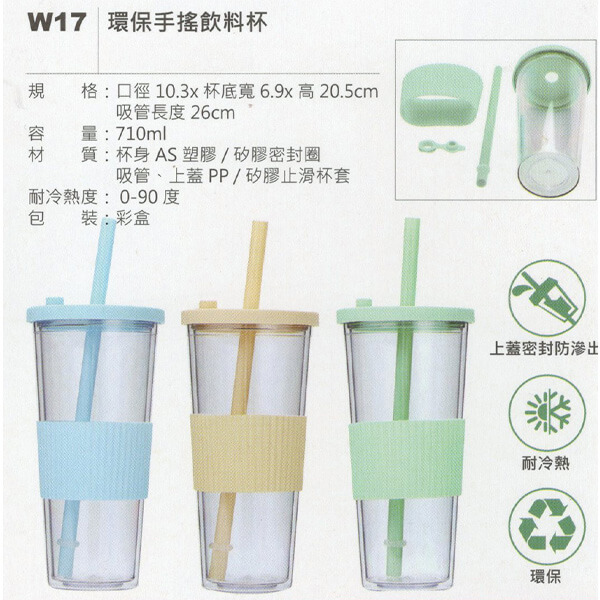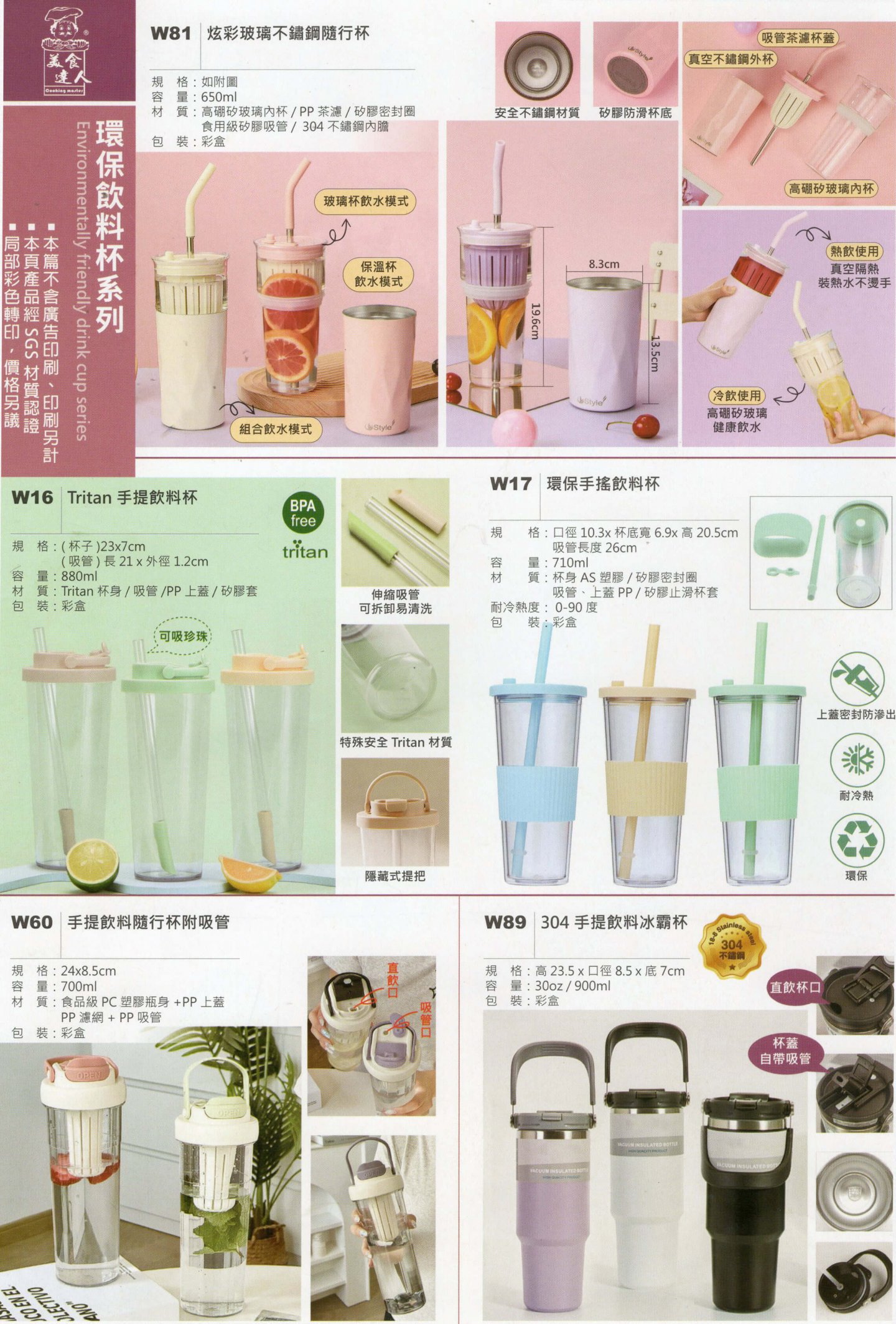 W81 炫彩玻璃不鏽鋼隨行杯W16 Tritan手提飲料杯W17 環保手搖飲料杯