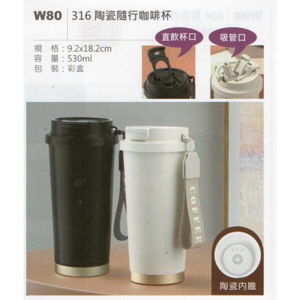 W60 手提飲料隨行杯附吸管W89 304 手提飲料冰霸杯W80 316 陶瓷隨行咖啡杯